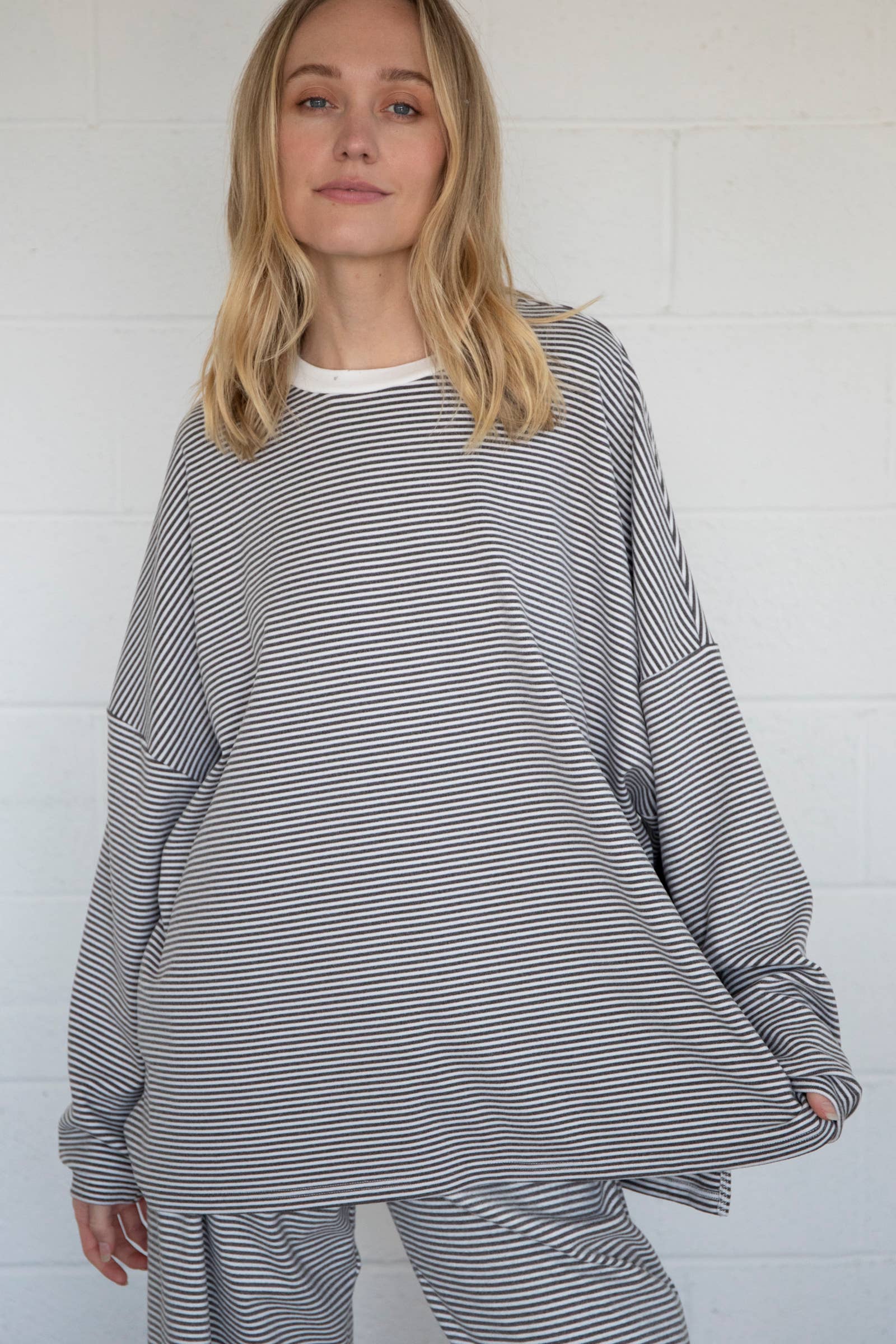 Super soft and cozy, striped oversized top. With its slouchy fit and classic pattern, it’s the kind of piece you’ll reach for again and again.