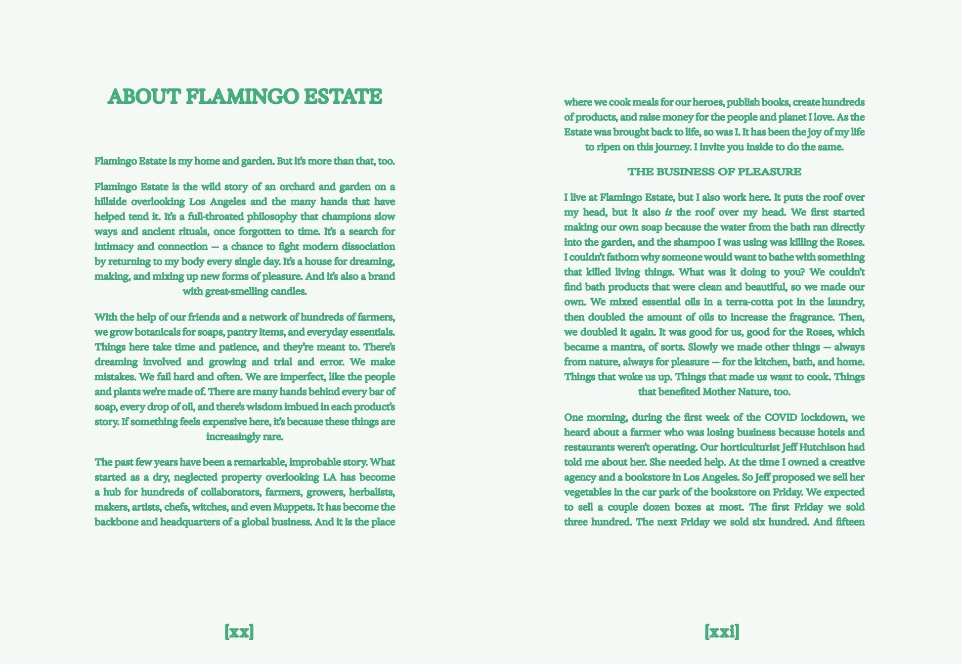 Perched high above Los Angeles and nestled within a lush orchard and verdant gardens sits Flamingo Estate, a pleasure-filled enclave of nature worship, folk mythologies, and powerful healing remedies. At Flamingo, Mother Earth is the ultimate luxury and pleasure is a human right.