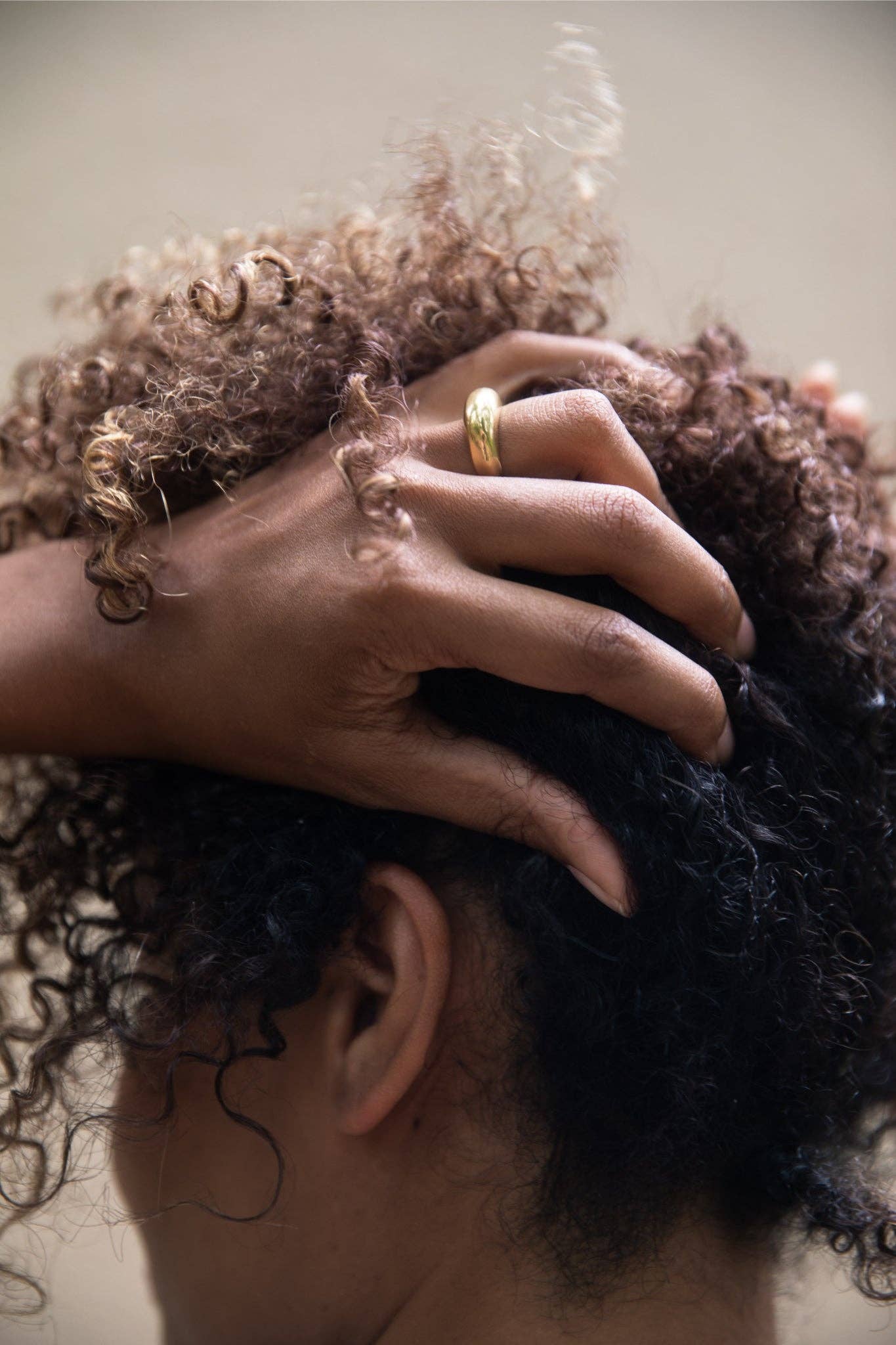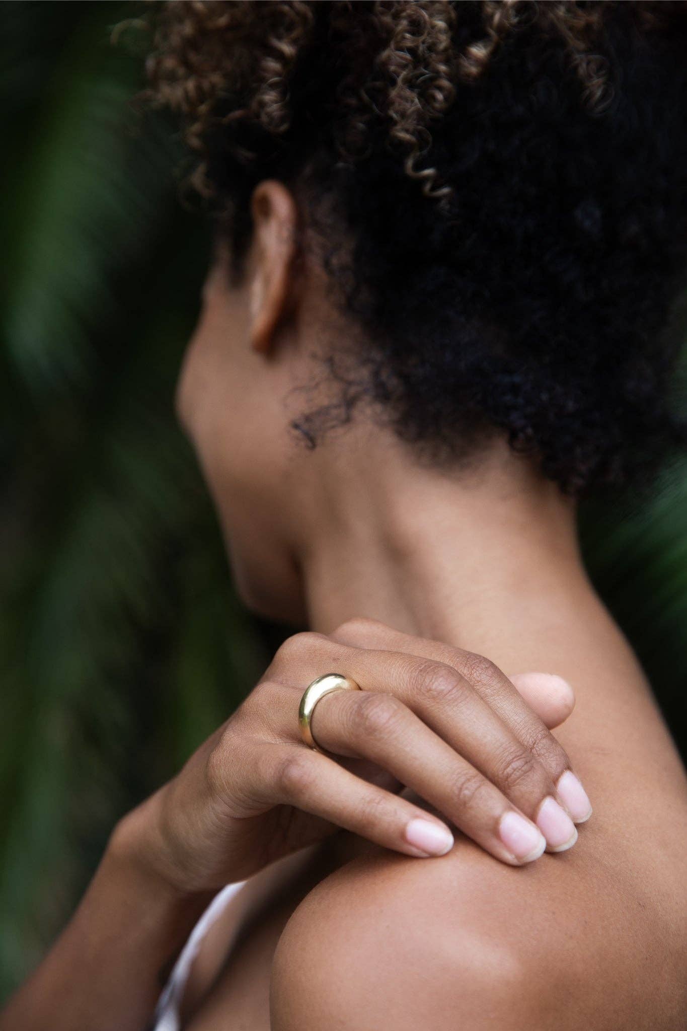 Gently grounded at the front, the Halo Ring evokes natural flow with a subtle front-facing weight. An artful statement piece, it mirrors the organic, imperfect round shapes found in nature. Sculptural yet wearable, it’s designed to make a quiet but striking impact every day.